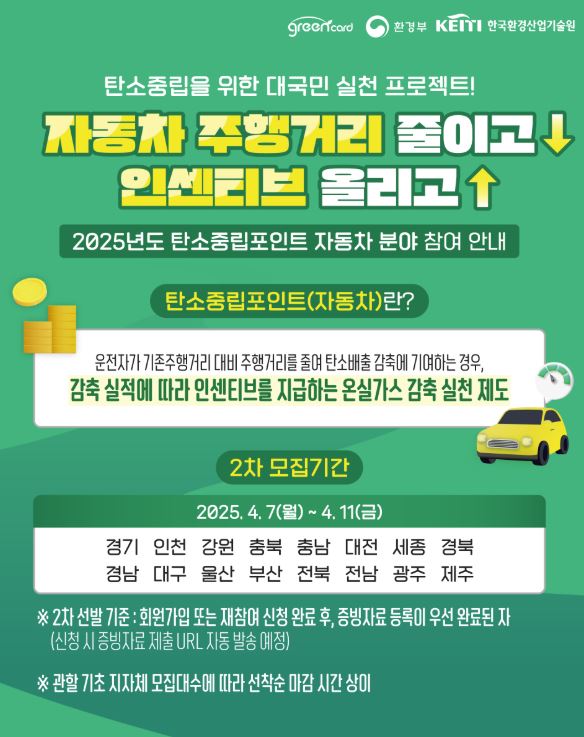자동차 탄소중립포인트제는 운전자의 자동차 주행거리 감축 실적에 따라 특전을 지급하는 온실가스 감축 실천 제도다.