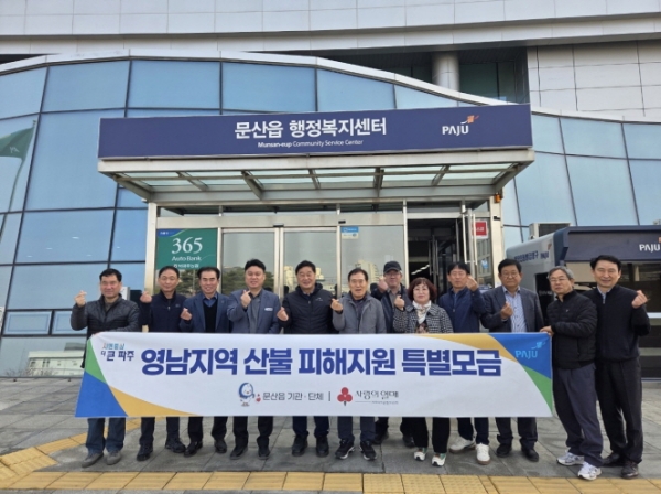 조춘동 문산읍장은 “어려운 상황 속에서도 이웃을 먼저 생각하는 문산읍 기관·단체들의 따뜻한 나눔에 감사드린다”며 “이번 모금에 함께 동참할 수 있어 더욱 뜻깊다 앞으로도 지역사회와 함께 재난 피해 지원을 위해 이웃돕기에 앞장서겠다”고 말했다.