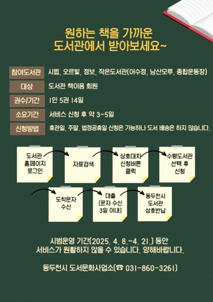 동두천시 도서관, 원하는 책을 가까운 도서관에서 받아보세요