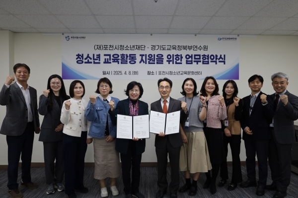 협약식에는 포천시청소년재단 김현철 대표이사와 경기도교육청북부연수원 이인순 원장을 비롯한 관계자가 참석했다.