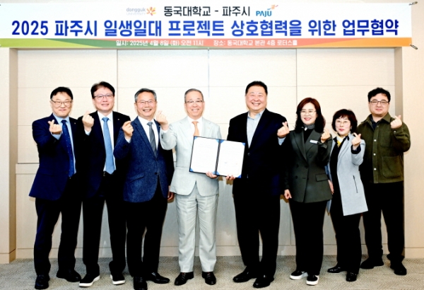 이번 협약에는 김경일 파주시장, 윤재웅 동국대 총장, 김지숙 월롱면장 및 파주시 관계자가 참석한 가운데 진행됐다.