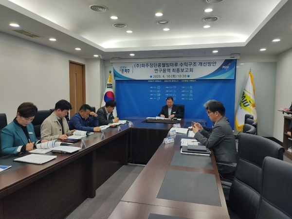 [금요저널] 파주시는 지난 10일 ㈜파주장단콩웰빙마루 수익구조 개선을 위한 연구용역 최종 보고회를 개최했다.