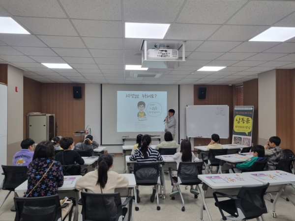 ‘귀신 선생님과 진짜 아이들’의 저자 남동윤 작가와의 만남에서는 초등학생 20여명을 대상으로 만화가의 직업 세계를 소개하고 그리기 예술, 캐릭터 빙고 게임 등 참여형 활동을 진행했다.