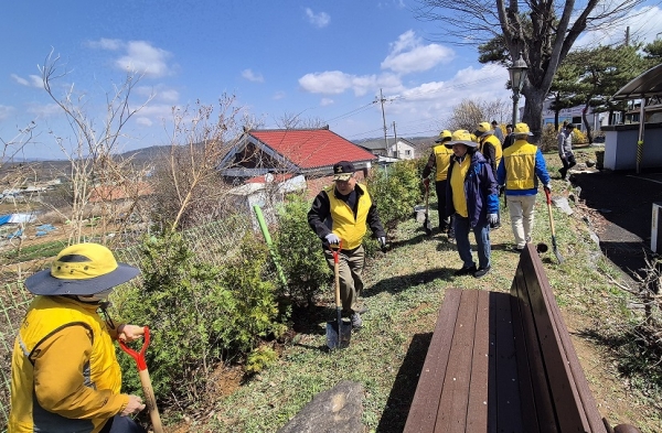 [금요저널] 파주시 장단면 실버경찰대는 지난 15일 장단면 행정복지센터 앞 소공원에서 ‘2025년 장단면 나무 심기 행사’에 참여해 식목 식재 봉사활동을 펼쳤다.