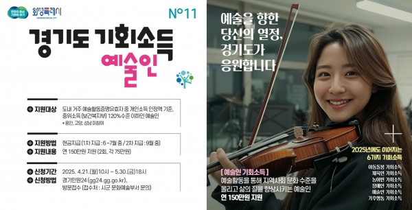 화성특례시, ‘경기도 예술인 기회소득’ 21일부터 신청