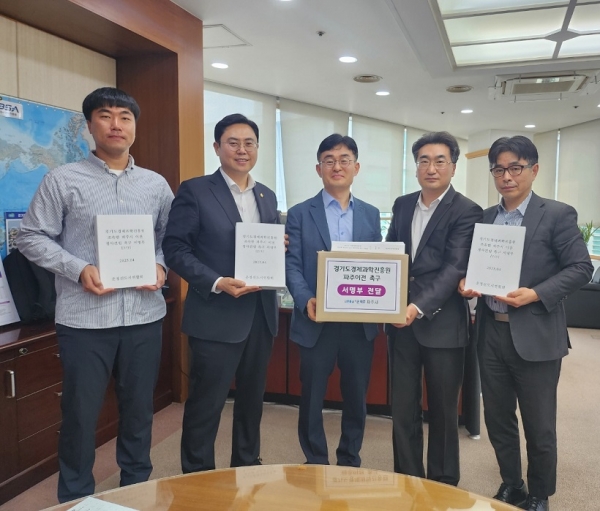 [금요저널] 파주시는 21일 경기도경제과학진흥원의 조속한 이전을 촉구하는 시민들의 서명부를 경기도와 경기도경제과학진흥원에 전달했다.