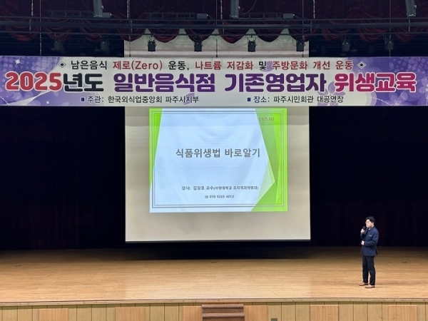 [금요저널] 파주시가 4월 17일 18일 양일에 걸쳐 시민회관 대공연장에서 관내 일반음식점 영업자 약 700여명을 대상으로 '2025년 일반음식점 기존영업자 식품위생교육'을 실시했다.