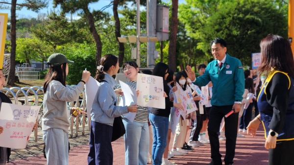 이날 현장에서는 안전 보행 지도, 교통 법규 준수 홍보, 운전자 대상 안전 운전 당부 등의 활동을 펼쳐 학생은 물론 지역 사회 구성원 모두의 교통안전 인식 제고에 기여했다.