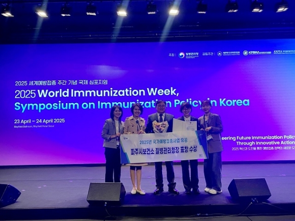 [금요저널] 파주시 파주보건소가 23일 질병관리청 주최로 열린 ‘세계예방접종 주간 기념 국제 심포지엄’에서 2025년 국가예방접종사업 우수기관으로 선정돼 질병관리청장 표창을 수상했다.