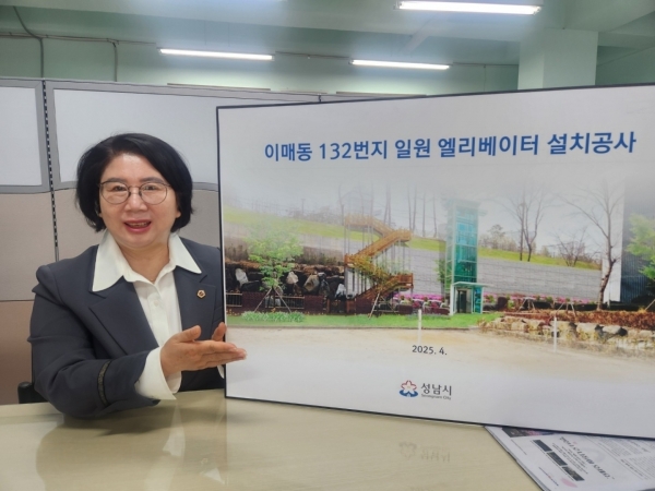 [금요저널] 경기도의회 교육행정위원회·도청예산결산특별위원회 이서영 도의원은 17일 성남시 이매동 아름마을 북카페에서 열린 주민설명회에 참석해 “지역 현안 사업 추진을 위해 확보한 특별조정교부금 25억 7천만원 중 5억원이 이매동 아름마을 주민들의 굿모닝파크 공원 진입 편의를 위한 엘리베이터 및 데크계단 설치 사업에 투입될 예정”이라며 “이번 사업을 통해 주민들의 공원 접근성이 크게 향상될 것으로 기대된다”고 밝혔다.