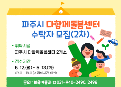 [금요저널] 파주시는 초등생 방과후 돌봄서비스 제공 시설인 다함께돌봄센터 수탁기관을 5월 13일까지 공개 모집한다.