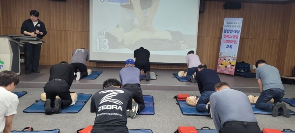교육은 △응급처치의 필요성과 안전조치 △심정지 환자의 반응 확인 △119 신고 및 구조 요청 요령 △성인 및 소아 대상 심폐소생술 방법 △자동심장충격기 사용법 등으로 진행됐다.