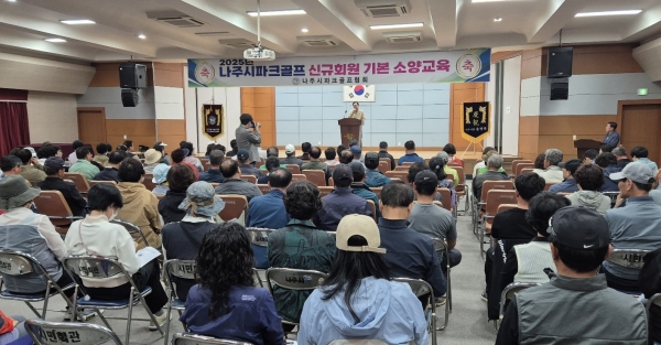 [금요저널] 나주시파크골프협회는 지난 27일 나주 시민회관에서 파크골프 신규 입문자들을 위한 ‘2025 나주시 파크골프 신규회원 기본 소양교육’을 성황리에 마쳤다.