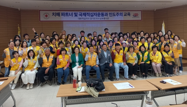 [금요저널] 평택시 송탄보건소 치매안심센터는 지난 28일 오후 2시, 치매 극복 선도단체로 지정된 대한적십자사 경기도지사 남부봉사관에서 자원봉사자 70여명을 대상으로 치매 파트너 교육을 진행했다.