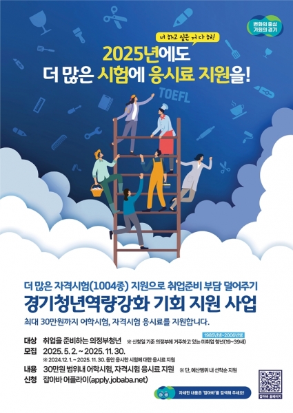 [금요저널] 의정부시는 청년 1인에게 최대 30만원까지 어학·자격시험 응시료를 지원하는 ‘2025년 경기청년 역량강화 기회지원 사업’을 5월 2일부터 시작한다.
