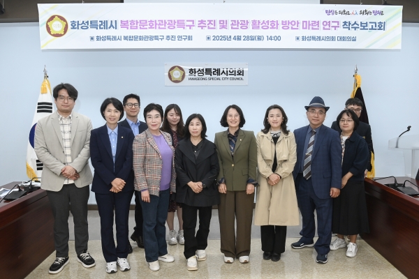 한편 ‘화성특례시 복합문화관광특구 추진 연구회’는 김경희 대표의원을 비롯한 9명의 의원으로 구성된 연구단체로 화성특례시를 글로벌 문화 관광지로 도약시키기 위한 실현 가능한 로드맵과 구체적인 추진 방향을 제시하고자 출범했다.