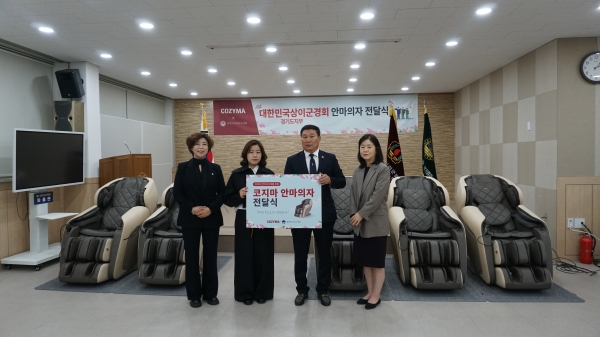 정경자 의원은 9일 헬스케어 전문 브랜드 ‘코지마’ 운영사 복정제형으로부터 고성능 안마의자 5대를 기증받아 상이군경회 경기도지부에 전달하는 전달식에 참석했다.