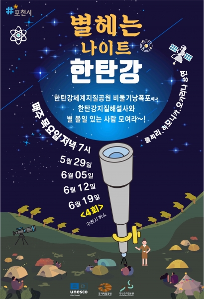 [금요저널] 포천시는 오는 5월 29일부터 6월 19일까지 매주 목요일 총 4회에 걸쳐 지질공원 해설사와 함께하는 ‘별헤는 나이트 한탄강’ 활동을 운영한다.