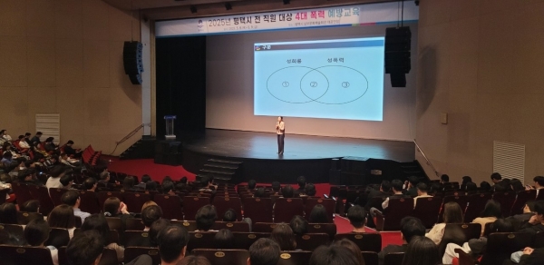 [금요저널] 경기도 평택시는 지난 8일과 9일 남부문화예술회관 대공연장에서 6급 이하 전 직원을 대상으로 4대 폭력 예방 교육을 실시했다.