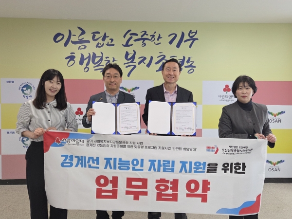 [금요저널] 초평동 행정복지센터는 지난 12일 오산남부종합복지관과 함께 ‘경계선 지능인 자립 준비를 위한 “꽃피다” 업무 협약’을 체결했다고 밝혔다.