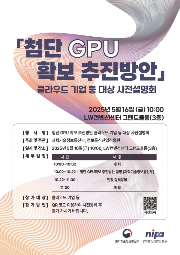 이번 사전설명회는 5월 16일 오전 10시, LW컨벤션센터 그랜드볼룸에서 개최됐으며 국내 인터넷 기반 자원공유 기업 등이 참석한 가운데 정부의 ‘첨단 그래픽 처리 장치 확보 추진방안’에 대한 상세 내용을 공유하고 이해를 돕기 위한 질의응답 시간을 가졌다.