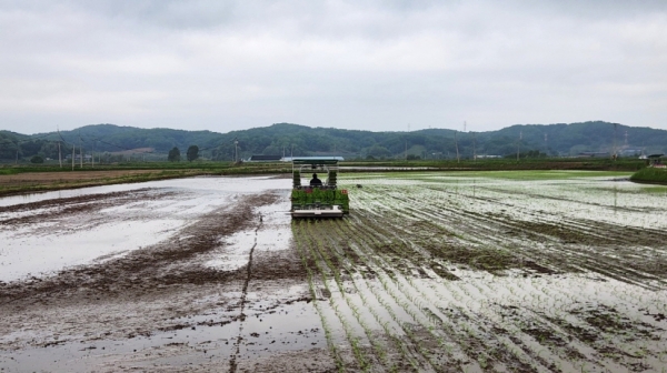 [금요저널] 파주시는 지난 19일 고품질 종자를 보급하고 지역에 맞는 새로운 소득 품종 발굴을 위해 파주시 장단면 일대에 위치한 파주시작물실증시험포장 4.3헥타르에 모내기 작업을 실시했다.