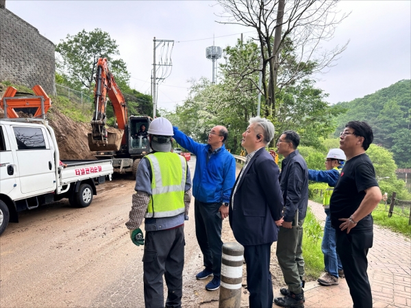 또한, 산에서 흘러내린 물이 도로로 유입되어 노면을 젖게 하는 문제점을 지적하며 도로 옆 별도 배수로 설치 등 장마철을 대비한 배수 대책 마련을 강조했다.