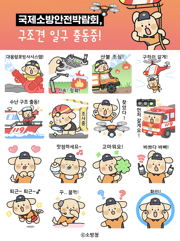[금요저널] 소방청은 ‘2025년 제21회 국제소방안전박람회’ 개최를 기념해, 소방청 대표 캐릭터인 ‘일구’를 활용한 카카오톡 이모티콘을 배포한다고 밝혔다.