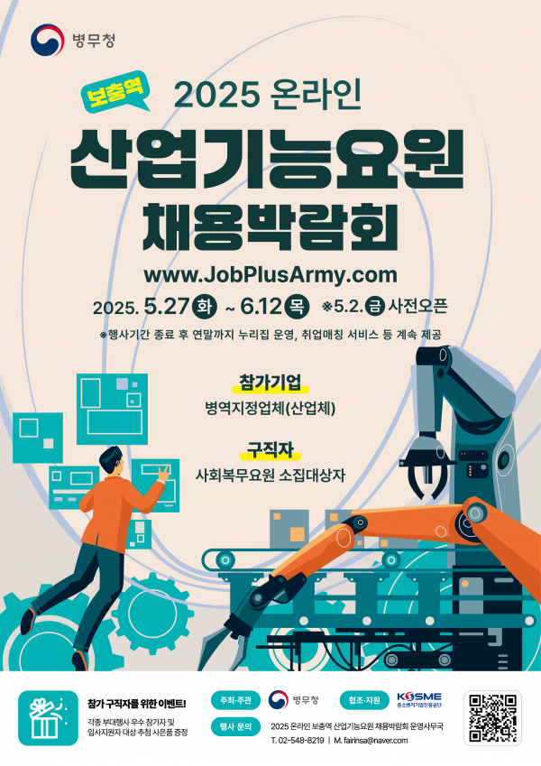 [금요저널] 병무청은 5월 27일부터 6월 12일까지 17일간 ‘온라인 보충역 산업기능요원 채용박람회’를 개최한다.