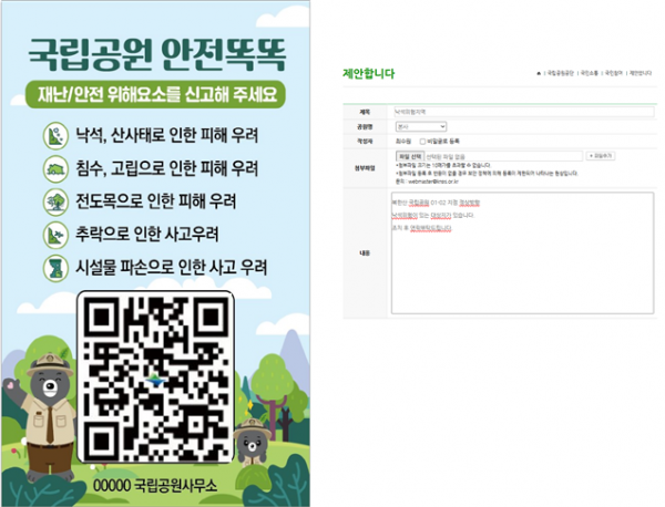‘국립공원 안전똑똑’에 재난·안전 위험 요인 신고하세요