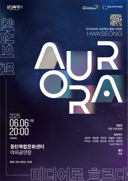 [금요저널] 화성시문화관광재단운영 화성시미디어센터는 오는 6월 6일 오후8시 동탄복합문화센터 야외공연장에서 미디어아트 맵핑 시연회 ‘2025 화성 오로라 – 환상의 빛, 미디어로 흐르다’ 를 개최한다.