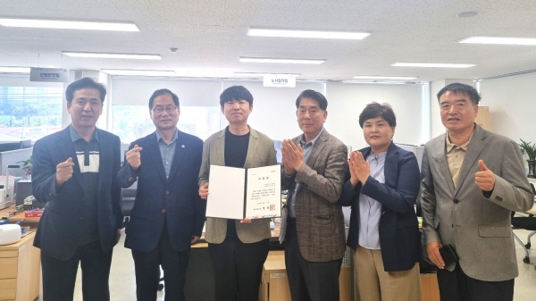 시민옴부즈만은 28일 노사협력과 사무실을 방문해 시민옴부즈만과 협력해 민원 해결에 적극 앞장서며 2025년 적극행정 공무원으로 선정된 이창석 노사협력팀장이 격려했다.