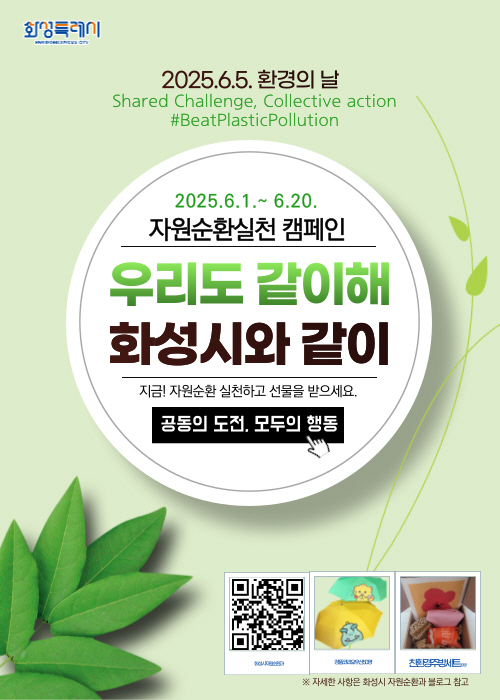 [금요저널] 화성특례시가 6월 5일 환경의 날을 맞아 오는 20일까지 시민과 함께하는 자원순환실천 캠페인 ‘우리도 같이해 화성시와 같이’를 진행한다.