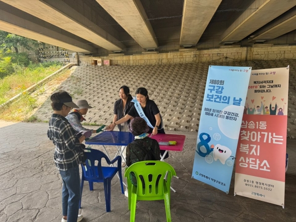 [금요저널] 고양특례시 덕양구 삼송1동은 지난 9일 구강보건의 날을 맞이해 창릉천 일대에서 ‘제4차 찾아가는 보건복지상담소’를 운영하며 복지 사각지대 해소와 어르신 맞춤형 보건복지 서비스 제공에 나섰다.