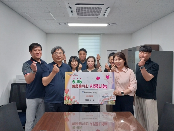 [금요저널] 동두천시 송내동 행정복지센터는 지난 5일 관내 봉사단체인 ‘조동아리’ 가 도움이 필요한 복지 사각지대 가구를 위해 써달라며 이웃돕기 성금 50만원을 전달했다고 밝혔다.