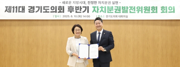 이날 회의에서 김진경 의장은 “경기도의회가 지방의회의 위상과 역량을 제고하는 여러 노력들을 이어왔다”며 “이번 후반기 위원회 활동을 통해 지방의회법 제정이라는 과제를 비롯해 지방의회의 구조적 한계를 뛰어넘는 새로운 돌파구가 마련되길 기대한다”고 전했다.