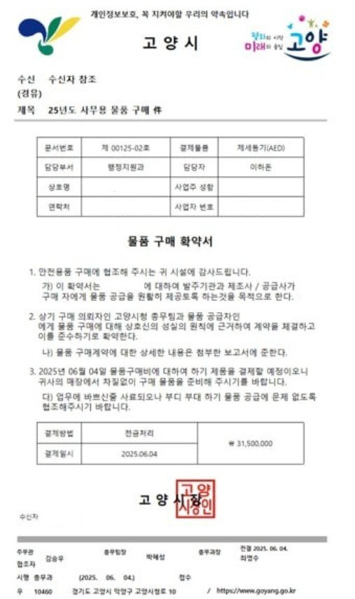 고양시, 공무원 사칭 ‘물품구매 사기’ 주의 당부
