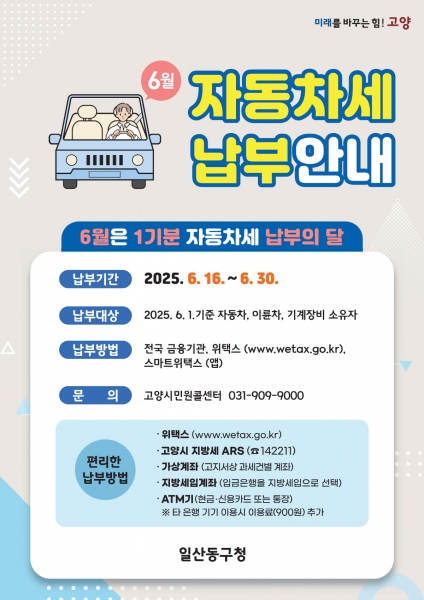 고양시 일산동구, ‘6월은 자동차세 납부의 달’