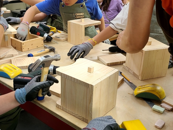오후에는 ‘트리탑 데크 로드 체험’ 후 ‘나눔 목공소’로 이동해, 목공 도구를 활용한 휴지걸이 만들기 체험이 이어졌다.