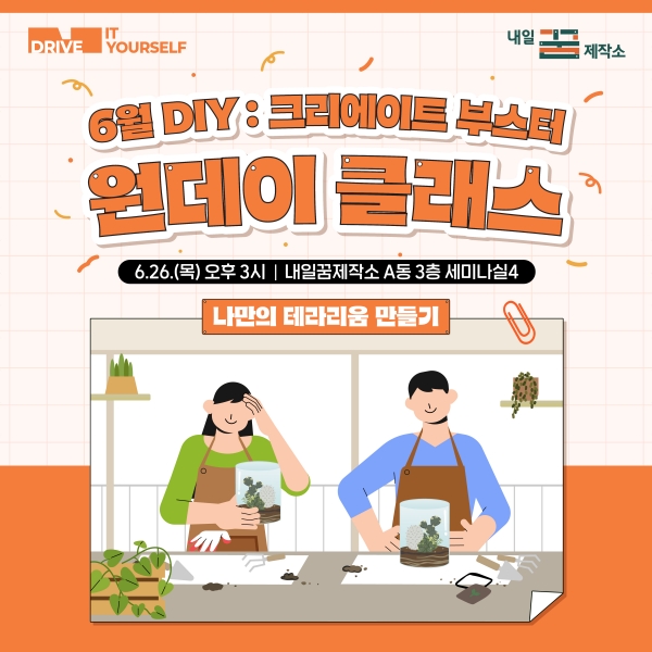 이 중 내일꿈제작소의 ‘크리에이티브 부스터’는 매월 마지막 주 화요일과 목요일 오후에 진행될 예정으로 테라리움, 노오븐 베이킹, 마크라메 소품, 제철 건강 식단 만들기, 패브릭 페인팅, 힐링밥상 등 다양한 라인업이 준비돼 있다.