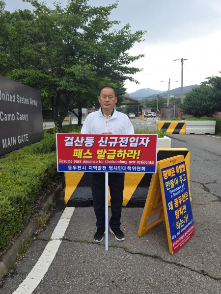 시의원들은 하루씩 교대로 피켓을 들고 캠프 케이시 정문 앞에 서서 걸산동 주민에 대한 출입 패스 제한 철회와 정부의 약속 이행을 촉구했다.