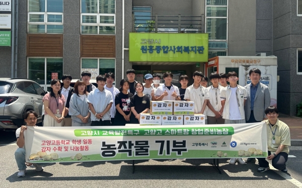 [금요저널] 고양특례시는 지난 19일 고양고등학교 학생들과 함께 학생들이 직접 재배한 감자 50kg을 고양시 원흥종합사회복지관에 기부했다고 밝혔다.