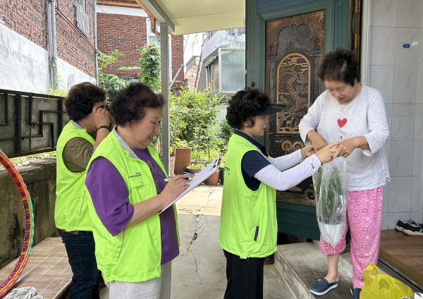 돌봄단은 6월 정기 활동으로 5가구를 방문해 복지위기 점검표를 활용한 생활 실태 및 어려움을 파악하고 동 행정복지센터 담당자에게 연계했다.
