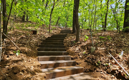 이번 공사는 어등산 정상에서 생골산책로 방면 700m 구간을 정비하는 사업으로 퍼걸러 쉼터 1개소, 로프 난간 46경간, 침목 계단 139단, 데크 계단 15m, 흙막이 편책 24m 등을 설치했다.