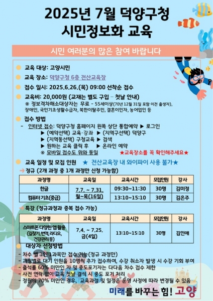 고양시 덕양구, 6차 시민정보화교육 및 7월 특강 접수