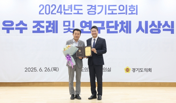 [금요저널] 경기도의회 건설교통위원회 김성수 의원이 대표로 발의한 ‘경기도 청소년 문화예술 활동 지원 조례’ 가 26일 열린 ‘2024년도 경기도의회 우수 조례 및 연구단체 시상식’에서 우수 조례상을 수상했다.