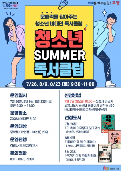 [금요저널] 고양특례시 높빛도서관은 오는 7월 26일부터 8월 23일까지 ‘문해력 잡는 청소년 SUMMER 독서클럽’을 운영한다고 밝혔다.