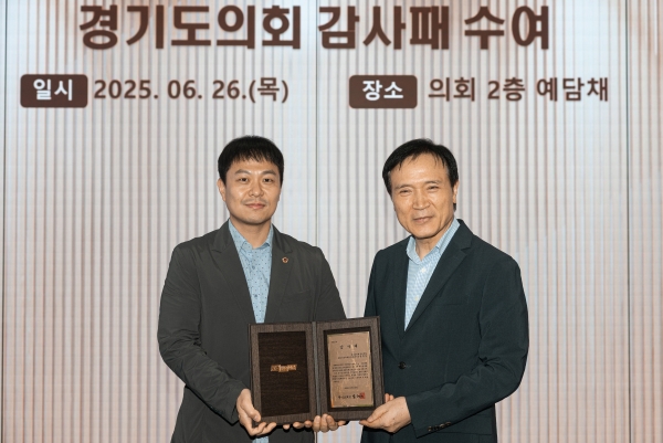 [금요저널] 경기도의회 도시환경위원회 유영일 부위원장이 26일 임태희 경기도교육감으로부터 경기교육 발전에 기여한 공로를 인정받아 감사패를 수상했다.