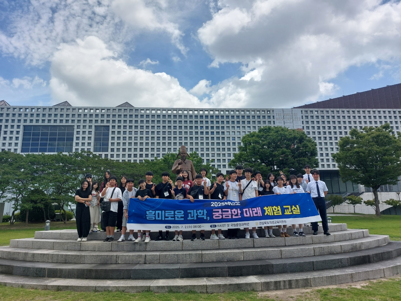 경상북도의성교육지원청(교육장 이우식)은 7월 2일(수) 08시부터 KAIST 및 국립중앙과학관에서 자유학기 공동 교육과정 지원의 하나로 관내 중 1학년 학생 25명을 대상으로 과학계열 진학 진로 체험 프로그램을 실시하였다.