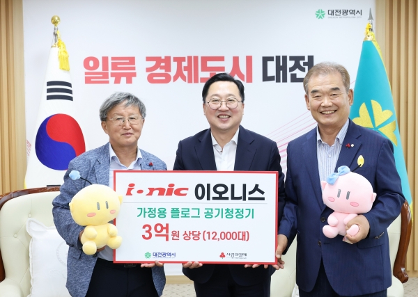 [금요저널] ㈜이오니스는 7월 7일 대전시청에서 플러그형 공기청정기 1만2천 대를 사회복지공동모금회를 통해 기탁했다.